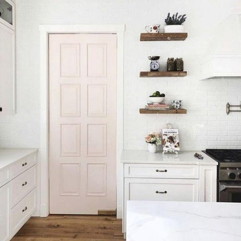 An eye-catching door doesn't just have to be for exteriors — it can perk up an interior as an alternative to an accent wall. This door — painted in Head Over Heels AF-250 — achieves just that. (DOOR) Head Over Heels AF-250, Regal® Select, Semi-Gloss (WALLS) Simply White OC-117, Regal® Select, Matte